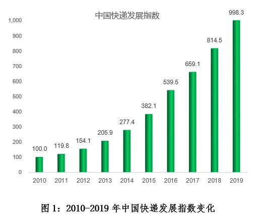 2019年,快遞發(fā)展普及指數(shù)為389.0,同比提高3.1%。