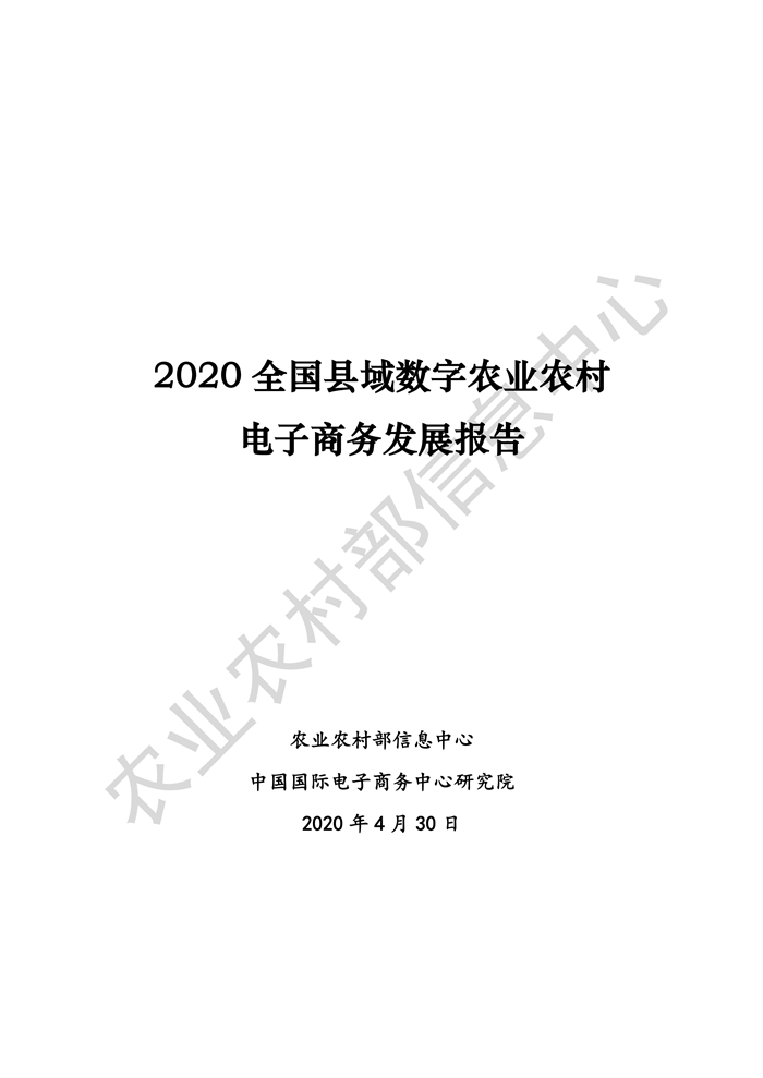4月30日,農(nóng)業(yè)農(nóng)村部信息中心聯(lián)合中國國際電子商務(wù)中心研究院在京舉辦《2020全國縣域數(shù)字農(nóng)業(yè)農(nóng)村電子商務(wù)發(fā)展報(bào)告》線上發(fā)布會(huì)。