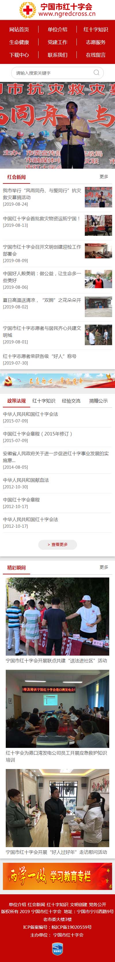 寧國紅十字會網(wǎng)站于2019年11月初建設(shè),為確保網(wǎng)站盡快開通,簽定合同后易天科技第一時(shí)間辦理網(wǎng)站備案手續(xù),經(jīng)1周制作網(wǎng)站功能建設(shè)完成。3個(gè)星期工信部備案通過,上線后提交百度搜索引擎,目前網(wǎng)站已正式上線。百度搜索排名第一。網(wǎng)站同時(shí)開通手機(jī)版,通過手機(jī)訪問自動判斷,自動適應(yīng)手機(jī)。